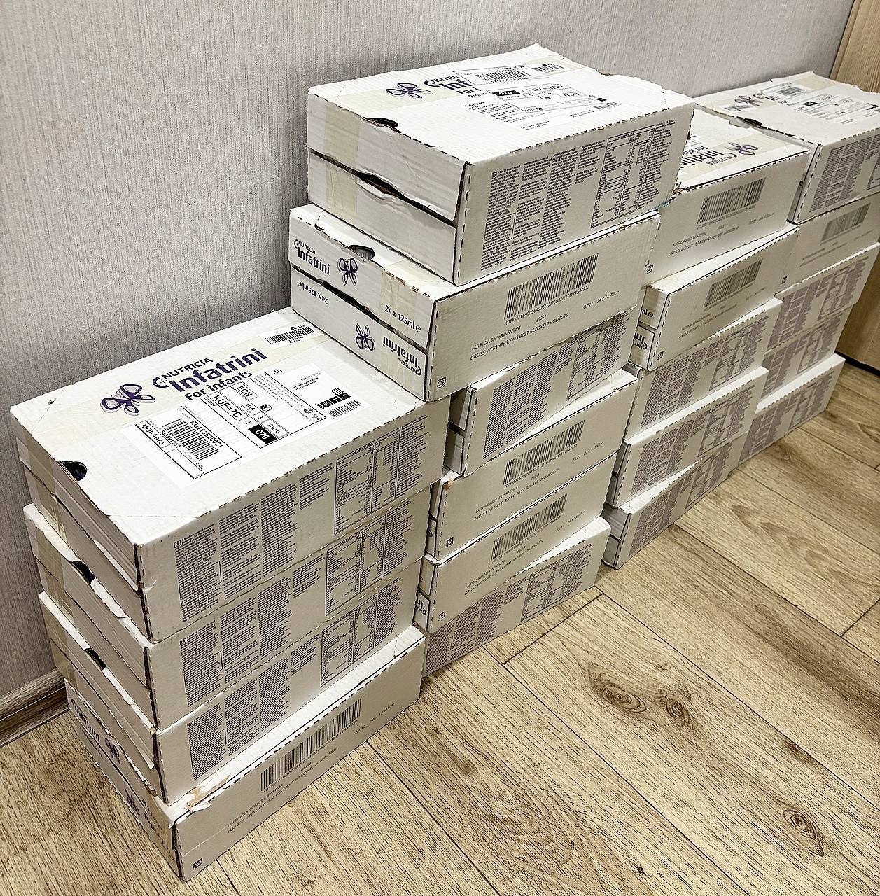 Самарское отделение Российского детского фонда приобрело 480 бутылочек (а это 60 литров или 63 кг) специального энтерального питания «Infatrini».